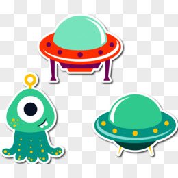手绘卡通外星人开宇宙飞船贴纸免抠素材