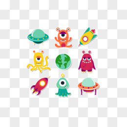 手绘卡通外星人贴纸素材