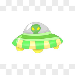 黄绿可爱科技外星人飞船元素