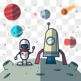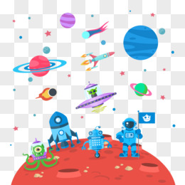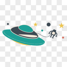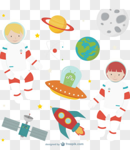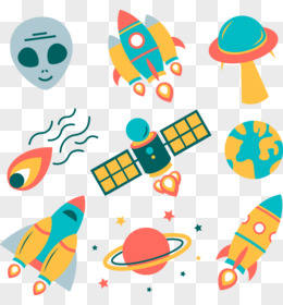 一组卡通蓝色线条宇宙飞船贴纸合集系列六素材