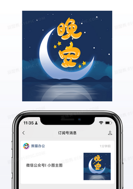 寂静夜晚星空弯月新媒体公众号次图晚安艺术字手机海报配图