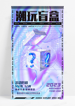 活动促销紫色酸性潮玩盲盒UI手机海报亮黄色酸性潮流渐变盲盒促销手机宣传海报