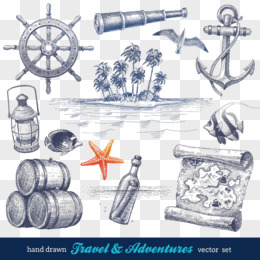 一组卡通蓝色线条宇宙飞船贴纸合集系列六素材