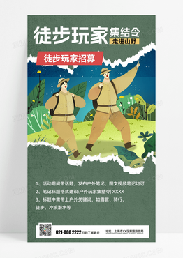 玩家招募徒步徒步旅游徒步玩家手机海报