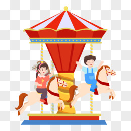 卡通儿童一起在游乐场坐旋转木马场景素材