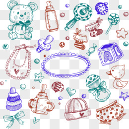 一组彩色线描涂鸦风玩具套图之小鸭子免抠元素