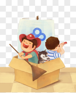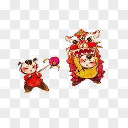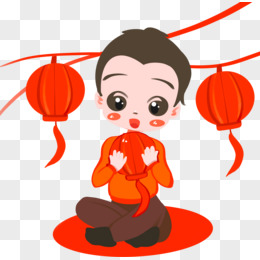 手绘卡通元宵节小男孩拿灯笼玩免抠元素