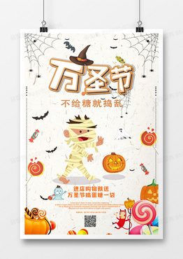 手绘插画风万圣节挥舞着魔法棒让南瓜灯飞舞魔女元素