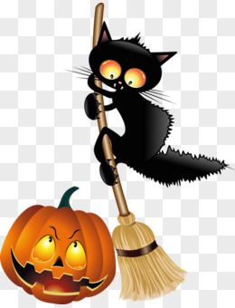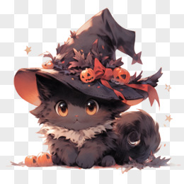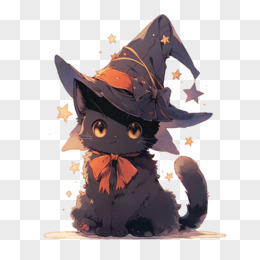 戴着魔法帽的可爱黑猫元素