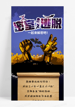 蓝黑色扁平风密室逃脱剧本杀狼人杀海报长图