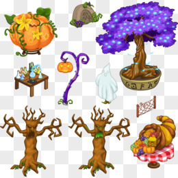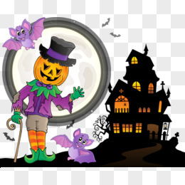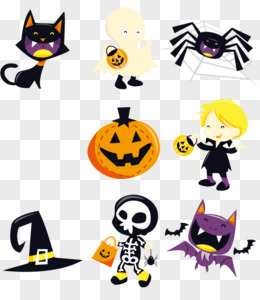 手绘卡通矢量万圣节猫咪与南瓜元素