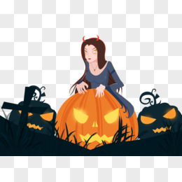 手绘卡通万圣节之南瓜服装扮的小女巫