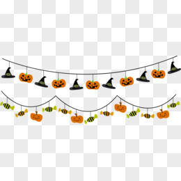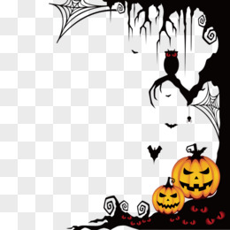 卡通手绘万圣节南瓜灯女巫帽枯树边框元素