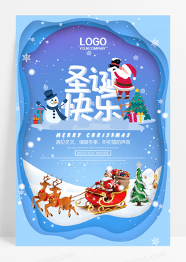 剪纸圣诞快乐促销海报