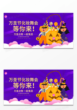 紫色简约卡通万圣节化妆舞会展板万圣节面具舞会