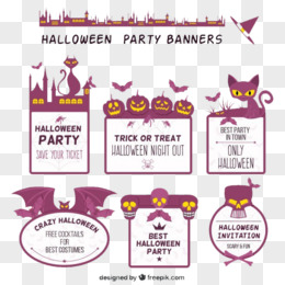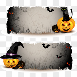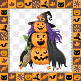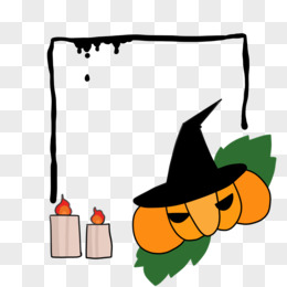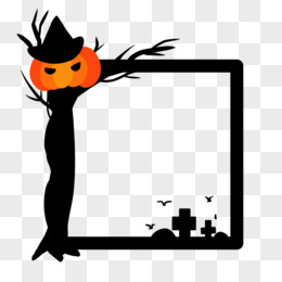 卡通手绘万圣节南瓜灯女巫帽枯树边框元素