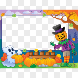 手绘卡通城堡鬼屋环绕万圣节边框元素