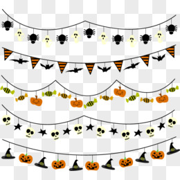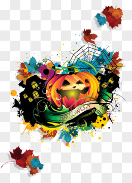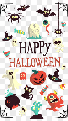 手绘卡通矢量万圣节猫咪与南瓜元素