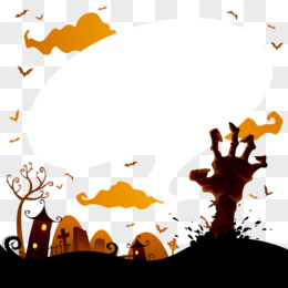 手绘卡通城堡鬼屋环绕万圣节边框元素