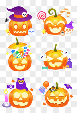 一组矢量搞怪南瓜元素合集