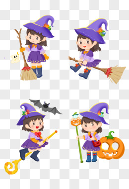 一组小魔女女巫免抠元素合集