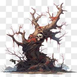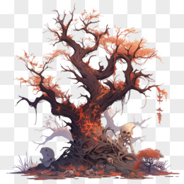 插画风枯树影免抠素材