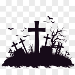 手绘万圣节十字架坟墓免抠元素