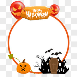 手绘卡通城堡鬼屋环绕万圣节边框元素