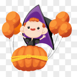 手绘卡通万圣节之坐在南瓜上的小女巫