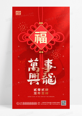 光效风格红色万事兴龙2024龙年新年海报龙年新年手机宣传海报