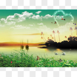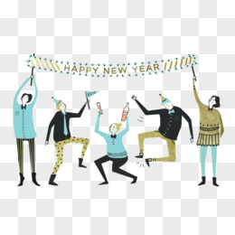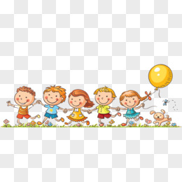 卡通手绘小女孩和舞狮子的人玩耍免抠元素