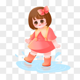 卡通手绘玩水的小女孩免抠素材