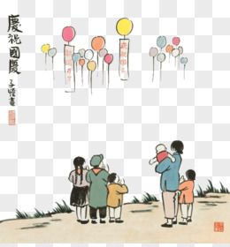 一组卡通爱国手举牌贴纸套图之喜迎国庆免抠素材