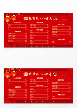 红色喜庆传统美食农家特色小碗菜美味食品菜单价目表展板