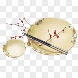 手绘卡通一个木碗里放着香蕉水果捞免抠元素
