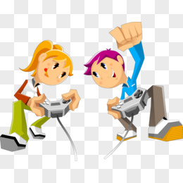 卡通手绘免抠男孩女孩一起玩游戏元素