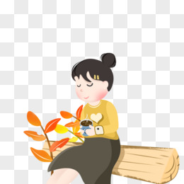 秋天树干女孩免抠元素