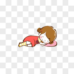 卡通手绘女孩抱着娃娃睡觉免抠素材