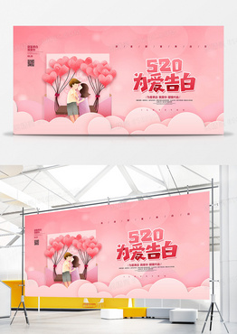 粉色简约520为爱告白情人节宣传展板设计
