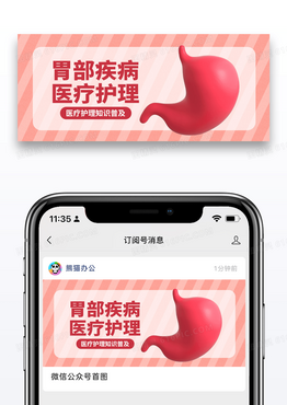 红色手绘插画医疗健康胃部疾病护理知识普及公众号首图