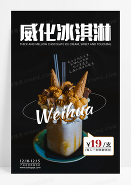 黑色清新风冰淇淋甜品活动宣传海报甜品手机宣传