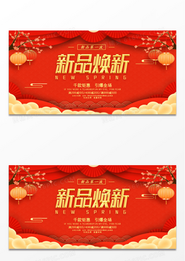 喜庆红色帷幔新品焕新促销折扣活动展板