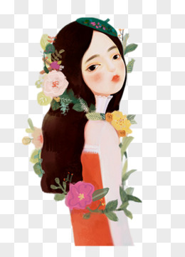 手绘唯美女孩免抠元素