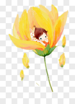 唯美手绘女孩采花捧着花插画元素