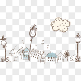 可爱唯美插画风景建筑白云
