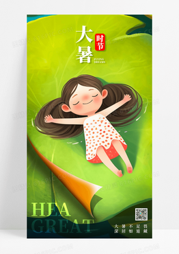 大暑可爱的女孩躺在巨大的睡莲叶子上睡觉手机海报