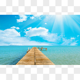 蓝色的海边栈道唯美图片