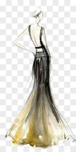 卡通手绘穿黑色礼服裙装的女性免抠元素
