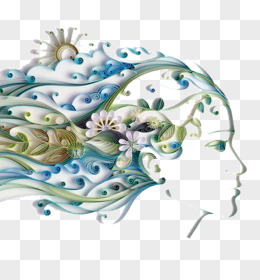 手绘三八妇女节女孩侧脸花卉创意合成元素