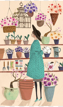 手绘插画风唯美女性手拿鲜花素材